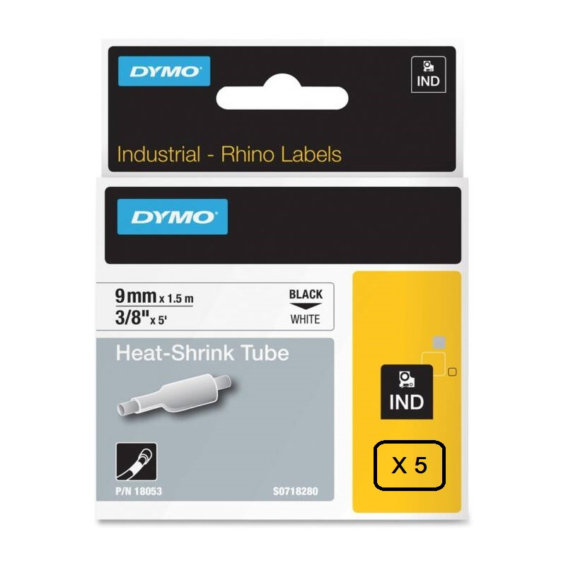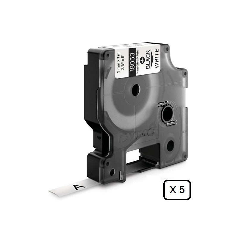 Lot de 5 gaines thermorétractables Dymo IND, 9 mm x 1,5m (Noir/Blanc) - 18053